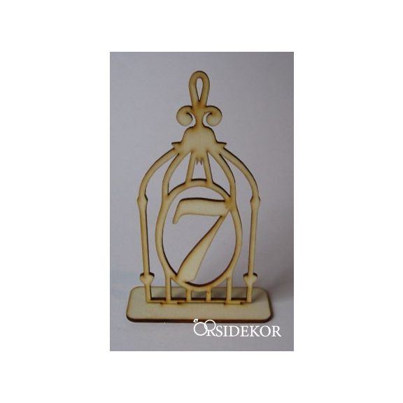 Ez a kalitka formájú, talppal ellátott fa asztalszám elegáns és mégis játékos kiegészítője az ünnepi asztaldekorációnak. Letisztult formája miatt könnyedén illeszkedik vintage, rusztikus, romantikus vagy akár klasszikus esküvői stílushoz is, így sokféle dekorációval harmonikusan kombinálható.