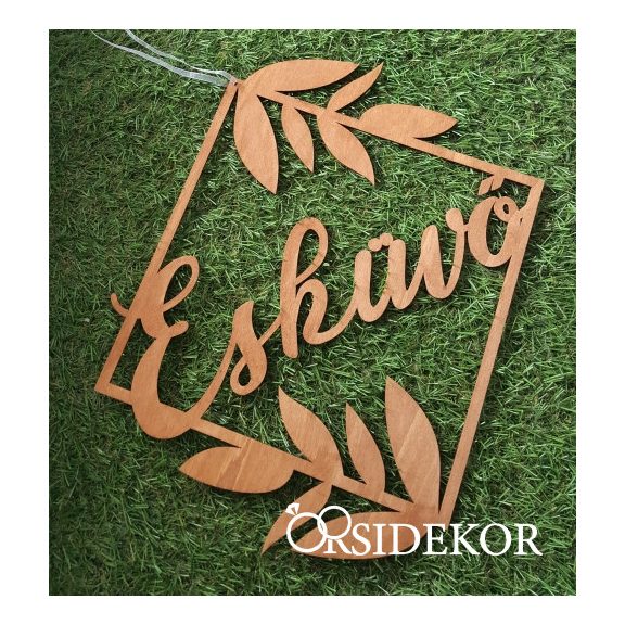 Tedd különlegessé a főasztal mögötti hátfal dekorációt ezzel az egyedi, kézműves, Esküvő feliratú akasztható fa táblával!