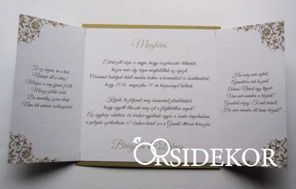 Az esküvői meghívó nem csupán információközlő eszköz, hanem a nagy nap hangulatának előfutára is. Ez a modell szalaggal átkötött kivitelben, szív motívumos fém dísszel készül, amely finom eleganciát és romantikus karaktert ad a meghívónak.