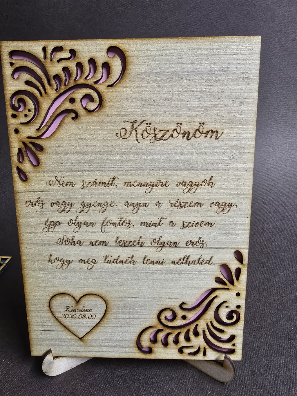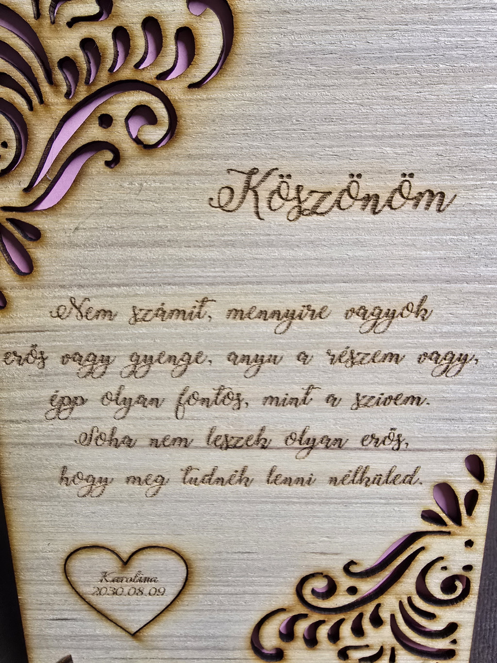 A szülőknek mondott köszönetet számtalan módon ki tudjátok fejezni. Remek módja ez a szülőköszöntő fa tábla, amire egyedi szöveget is kérhetsz.