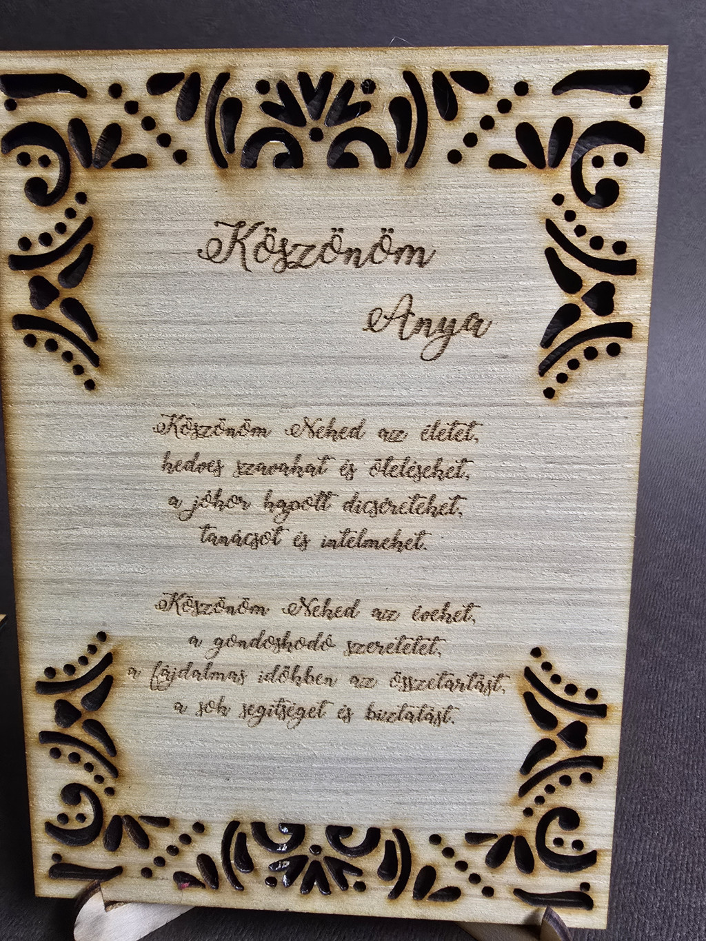 A szülőknek mondott köszönetet számtalan módon ki tudjátok fejezni. Remek módja ez a szülőköszöntő fa tábla, amire egyedi szöveget is kérhetsz.