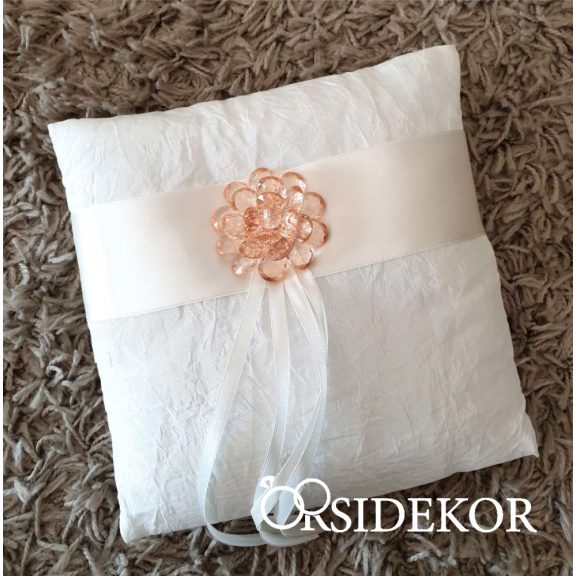 Ez a szatén gyűrűpárna szalaggal és barack színű dísszel dekorálva igazán egyedi és különleges, maga az elegancia.