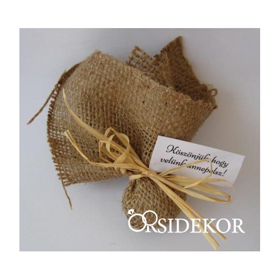 A fagolyó vanília illatú, természetes jutába csomagoljuk, rafia masnival és kísérőkártyával díszítjük, ha kéritek, egyben ültetőkártya funkciót is betölthet.