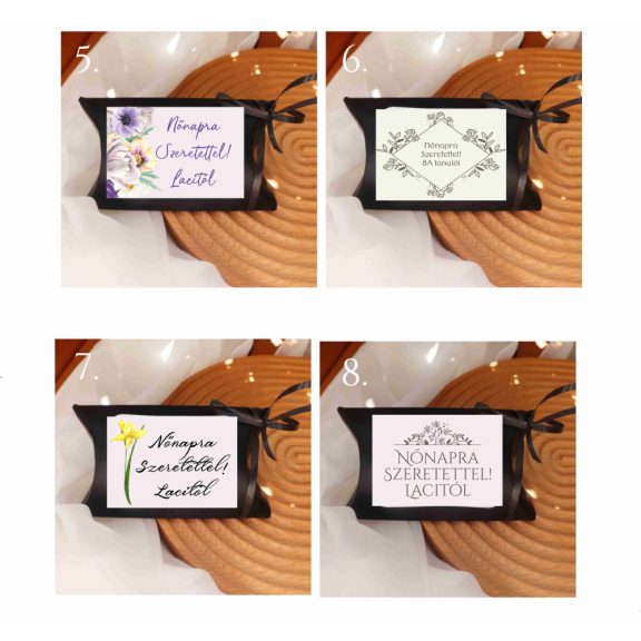 Ünnepelje a Nőnapot egy kifinomult és ínycsiklandó ajándékkal, mely minden nőt elbűvöl. A ajándék dobozunk egyedi és stílusos élményt kínál, hiszen tele van finom cukrozott mandulákkal, amelyek nem csak az ízlelőbimbókat kényeztetik, de egyúttal kifejezik a gondos figyelmet és szeretetet.