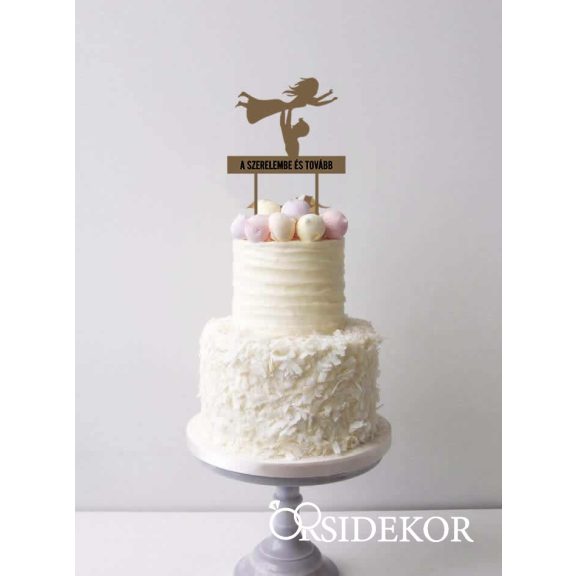 A „SZERELEMBE ÉS TOVÁBB” felirat különösen jól illik olyan párokhoz, akik a romantikus, érzelmes üzeneteket kedvelik. A tortadísz segít még személyesebbé tenni a tortavágás pillanatát, és szépen mutat a fotókon is. Méretének és kialakításának köszönhetően jól kombinálható friss virágokkal, bogyós díszekkel, marcipán- vagy cukordíszekkel.