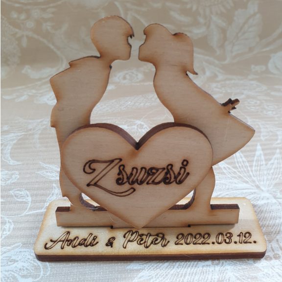 Fedezd fel az Ifjú Pár Köszönetajándékát és Stílusos Ültetőkártyáját, amely két funkciót tölt be egyetlen elegáns megoldással! Ez a tökéletes választás, ha szeretnél egy különleges és praktikus ajándékot adni egy esküvői vagy romantikus esemény alkalmából. A köszönetajándék fából készült, és egy kis talpacskára állva áll az asztalon, varázsolva egyedi és vidám hangulatot.