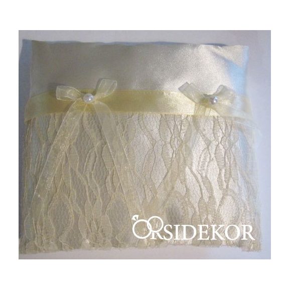 Ez a szatén gyűrűpárna krém csipkével és szalaggal díszítve igazán egyedi és különleges, maga az elegancia.