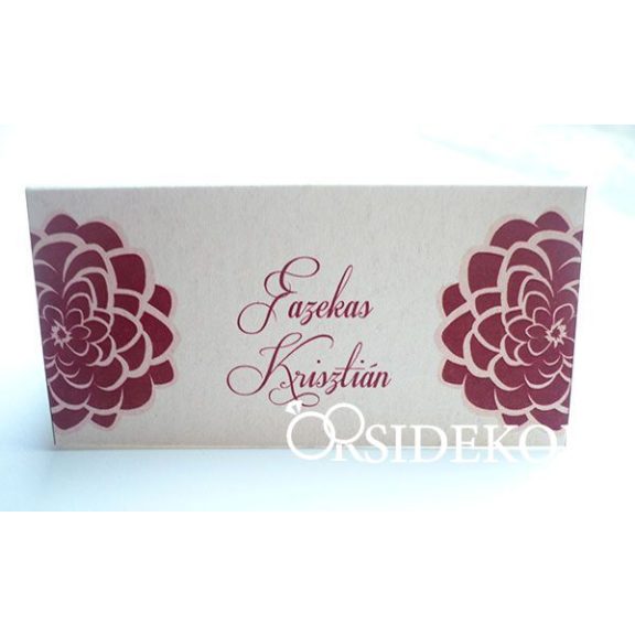 Az ültetőkártya mérete kihajtva 8 × 8 cm, összehajtva 8 × 4 cm, így jól látható az asztalon, mégsem foglal sok helyet a terítékből. A sátorszerű, összehajtott forma stabilan megáll, és szépen mutat a tányérok, szalvéták vagy kisebb köszönőajándékok mellett.