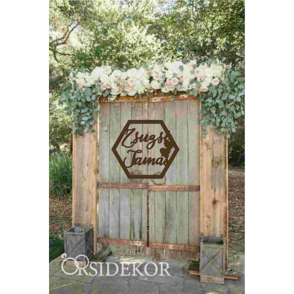 Esküvői hátfal dekoráció névvel sokszög alakú