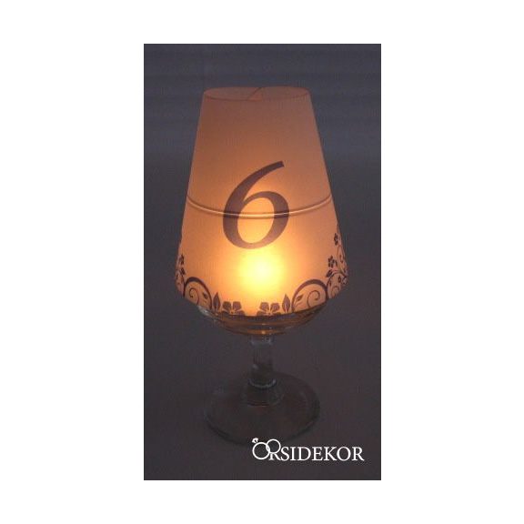 Borospohár lámpaernyő és asztalszám egyben – hangulatos, praktikus megoldás