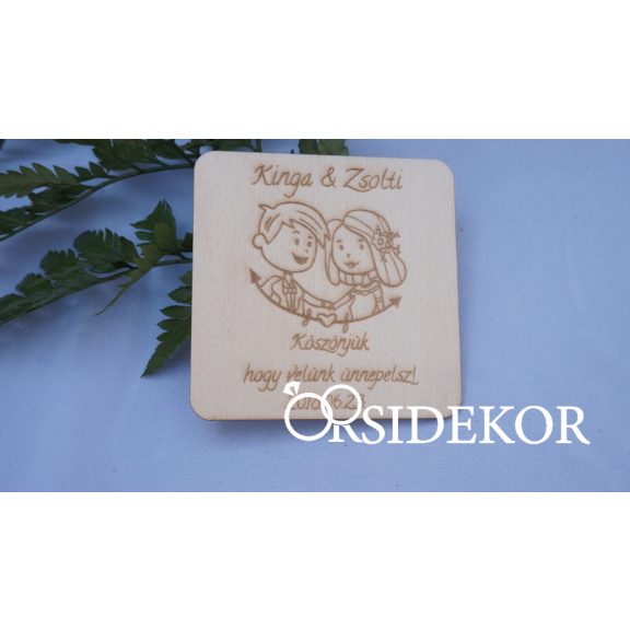 Kérjük, a rendelési folyamat végén található „Megjegyzés” rovatban tüntesd fel a neveket, a dátumot és a köszönőszöveget! Ebből egy mintát készítünk, amit átküldünk emailben véglegesítésre, és ha rendben találjátok, indulhat a gyártás.