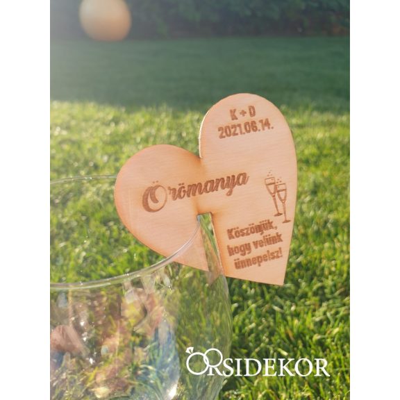 A "Pohárra tehető fa ültetőkártya szíves" további előnye, hogy a neveket lézertechnológiával gravírozzák a kártyákra, felár ellenében kérhető.