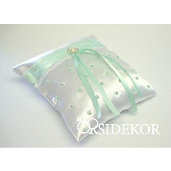 Ez a szatén gyűrűpárna gyöngyökkel és szalaggal díszítve igazán egyedi és különleges, maga az elegancia.