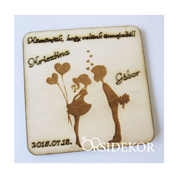 Kérjük, a rendelési folyamat végén található „Megjegyzés” rovatban tüntesd fel a neveket és a dátumot! Ebből egy mintát készítünk, amit emailben átküldünk véglegesítésre, és ha rendben találjátok, indulhat a gyártás.