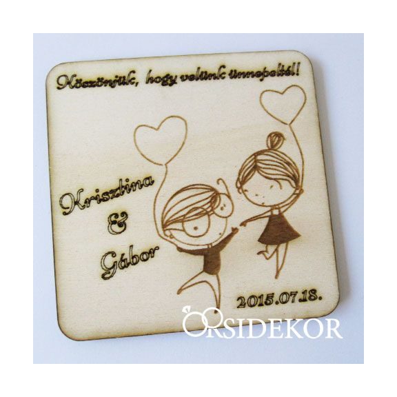Kérjük, a rendelési folyamat végén található „Megjegyzés” rovatban tüntesd fel a neveket és a dátumot! Ebből egy mintát készítünk, amit emailben átküldünk véglegesítésre, és ha rendben találjátok, indulhat a gyártás.