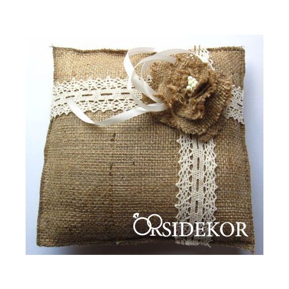 Juta gyűrűpárna vintage stílusban virággal és csipkével